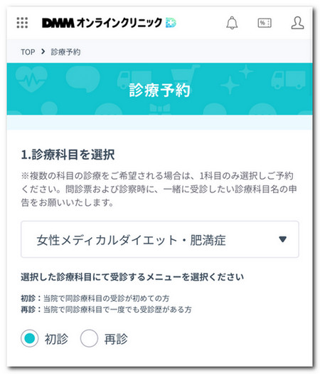 《1.診療科目を選択》の下にある▼をタップし、希望の診療内容を選びます。